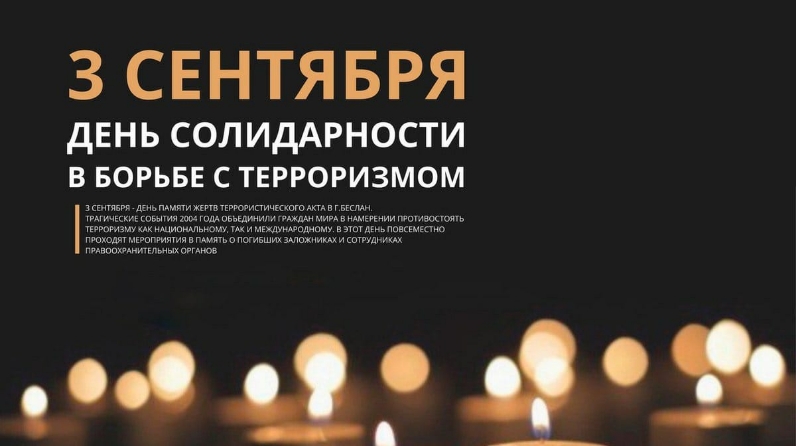3 сентября – День солидарности в борьбе с терроризмом. По всей стране вспоминают жертв террористических актов из числа гражданского населения, а также сотрудников правоохранительных органов, погибших при выполнении служебного долга.