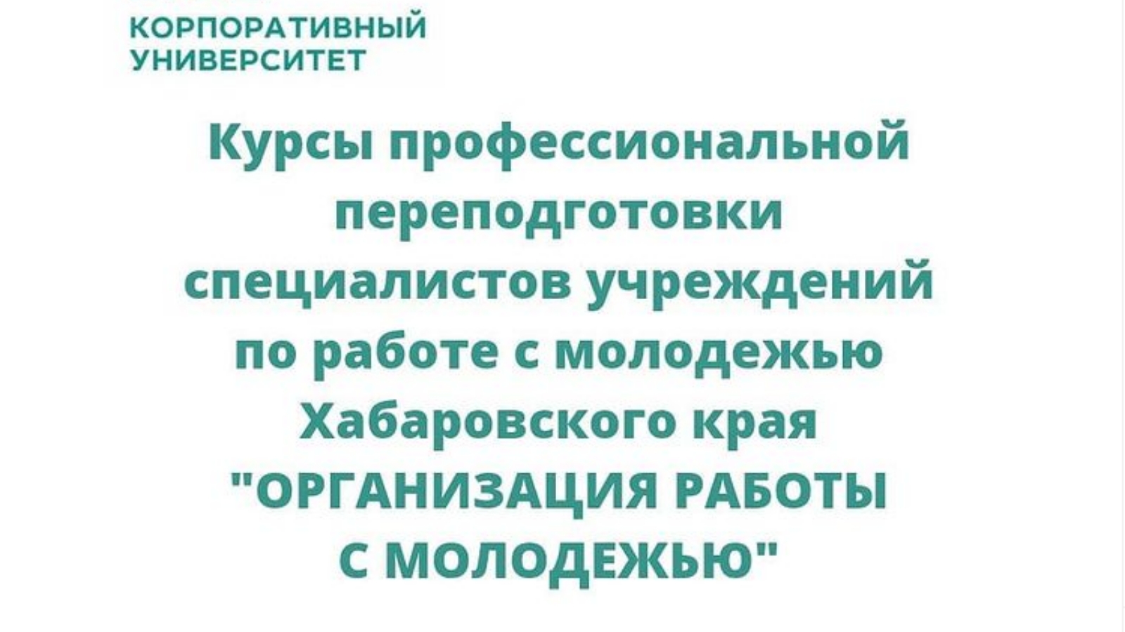 С 14 по 19 декабря 2020 года по поручению главного управления внутренний политики Правительства Хабаровского края проводится образовательный модуль курсов профессиональной переподготовки специалистов учреждений по работе с молодежью по профессиональному направлению «Организация работы с молодежью». Организаторами курса являются ФГБОУВО «Амурский гуманитарно-педагогический государственный университет» и КГАУ Дом молодежи г. Комсомольска-на-Амуре.