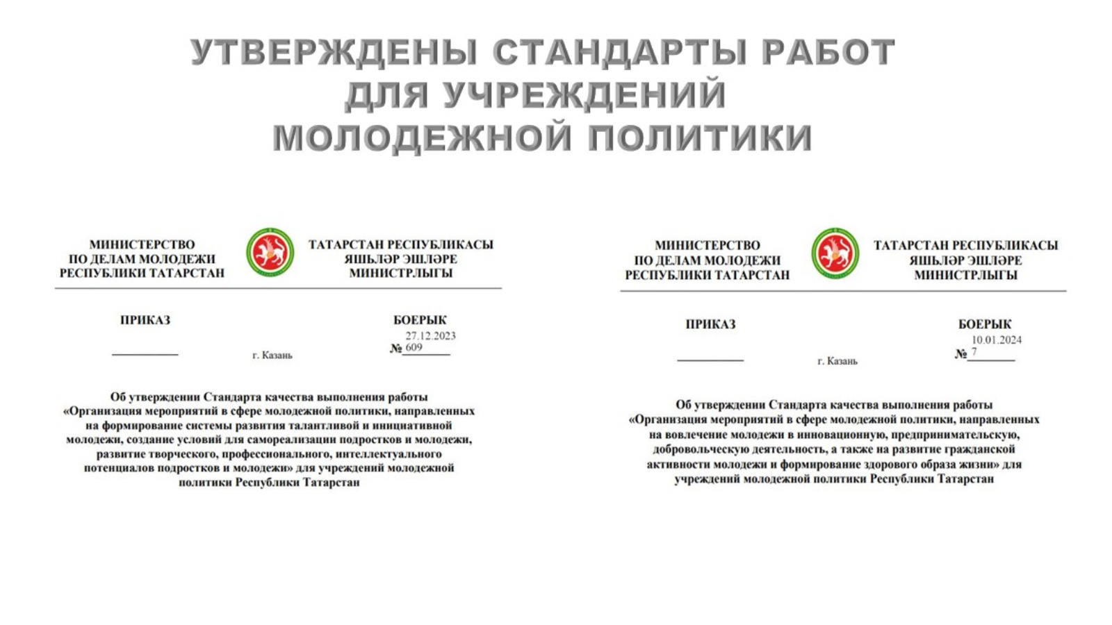 27 декабря 2023 года и 10 января 2024 года Министерством по делам молодёжи Республики Татарстан утверждены два стандарта качества выполнения работ: