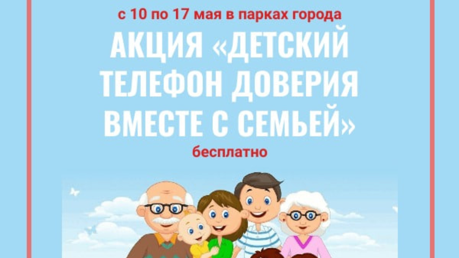С 10 по 17 мая 2025 года в парках нашего города пройдет добрая акция «Детский телефон доверия вместе с семьей». Это отличный шанс провести время с близкими, зарядиться позитивом и получить памятные подарки!