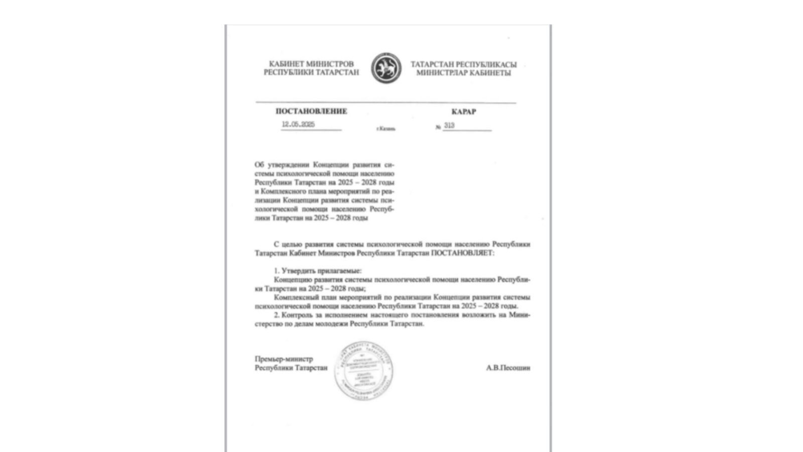 Также в Концепции определены основные приоритетные направления развития системы психологической помощи населению Республики Татарстан: