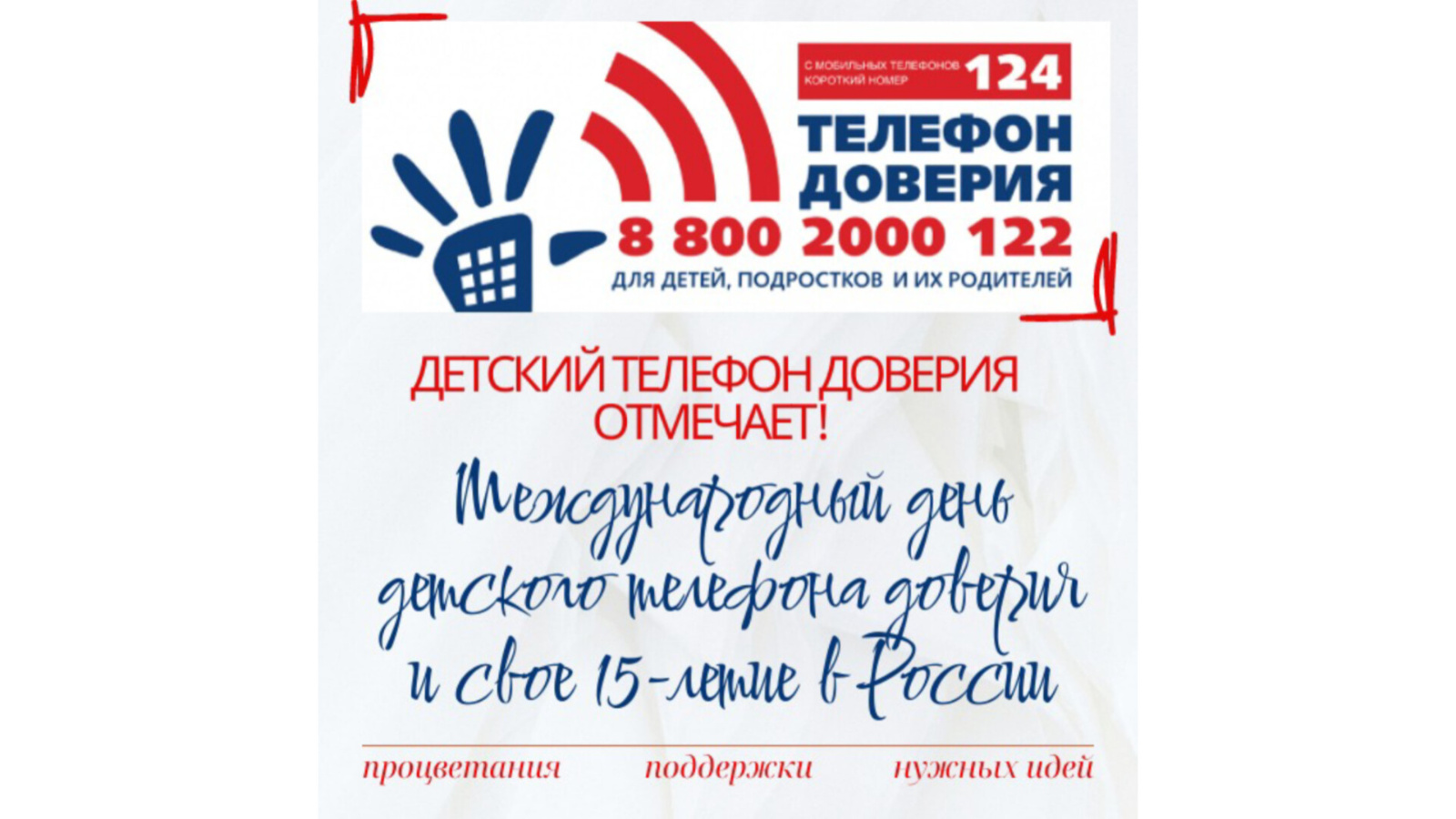 Мы хотим выразить искреннюю благодарность за ваш бесценный труд, преданность делу и за ту неоценимую помощь, которую вы оказываете детям, подросткам и их родителям, оказавшимся в сложной жизненной ситуации. Благодаря вашему профессионализму и чуткости каждый обратившийся за помощью может быть уверен, что на том конце провода его услышат и помогут!