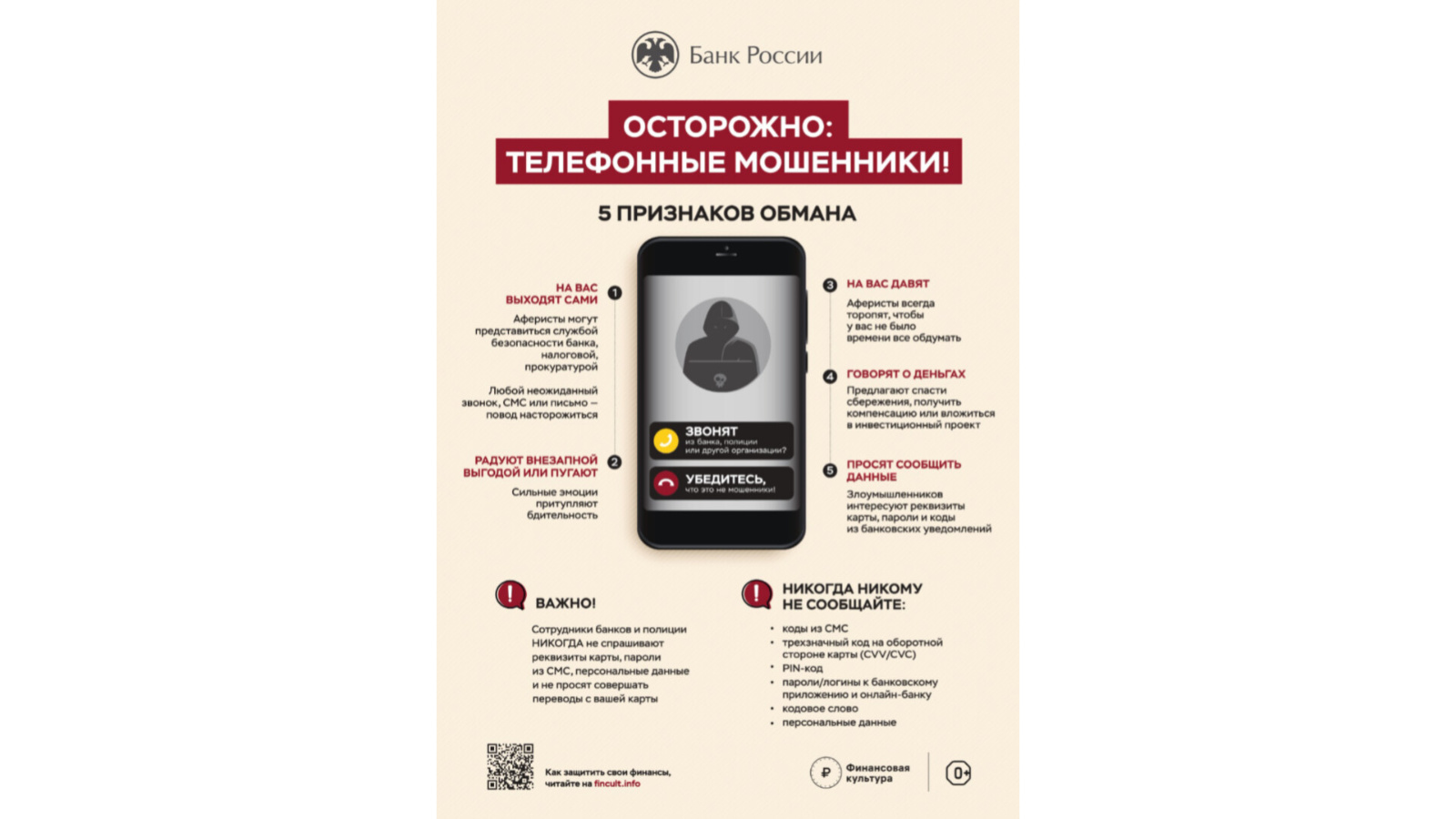 Правила безопасности: не разглашать данные карт и банковских счетов, не сообщать приходящие коды по телефону.